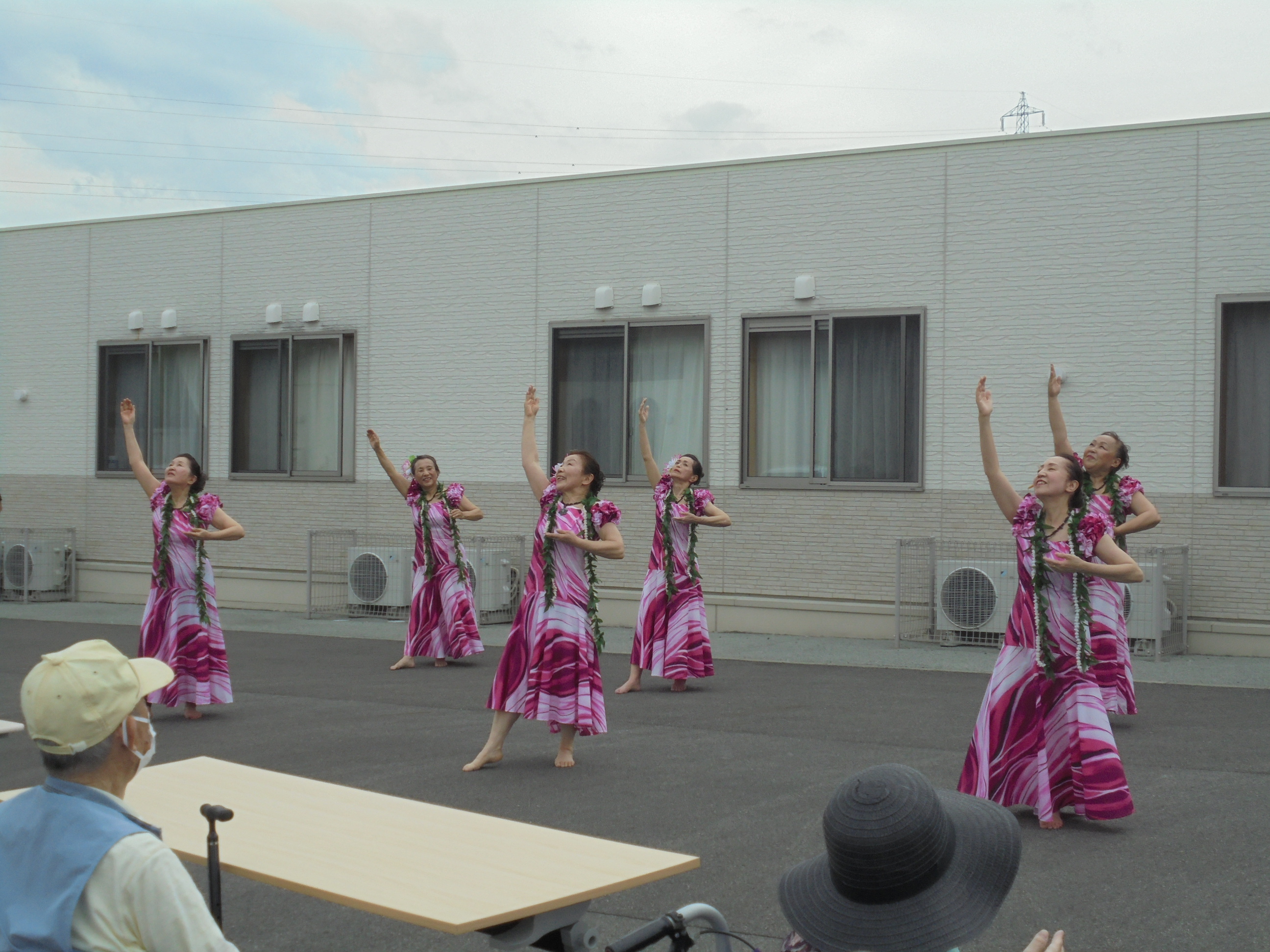 5月15日(木)14時から松阪事業所にてオープンカフェを開催しました。 今回は「フラメリア」様をお呼びして、フラダンスを披露していただきました。 利用者の方も美しい踊りを目の当たりにして感動されていました。 その後は、いこいの家の職員によるコンサートがあり、利用者の方も歌詞を手に取りながら楽しい時間を過ごされました。
