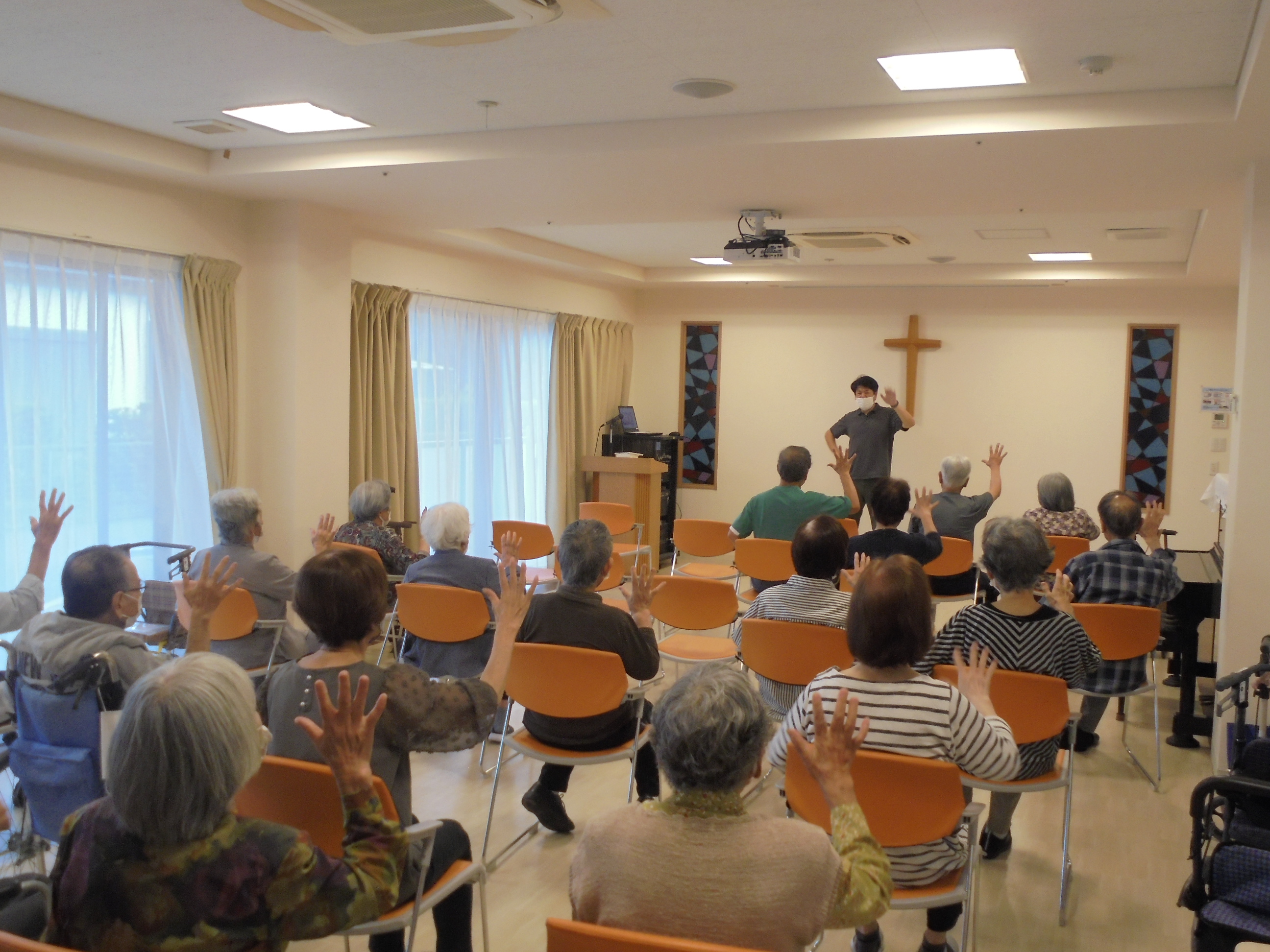 10月14日(火)14時よりグレイスホーム多目的ホールにてめぐみカフェを開催しました。 今月は以前行ったイラストが変化していくクイズを使った頭の体操から始まり、座ったまま行えるリズム体操にて軽い運動を行いました。 お話を楽しんでいる際に、最近の出来事や感じた事も発表していただき、物事の見方や考え方に良い刺激を受けました。 次回は11月11日(火)を予定しております。